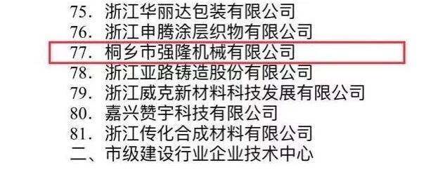 Biroul Guvernului Popular Municipal Jiaxing a subliniat clar că, pentru a implementa în continuare strategia de dezvoltare bazată pe inovare, să consolideze construcția sistemelor de inovare tehnologică a întreprinderilor, să îmbunătățească capacitățile și nivelurile de inovare tehnologică ale întreprinderilor și să promoveze transformarea și modernizarea economică. Prin urmare, Guvernul Popular Municipal Jiaxing a evaluat 84 de întreprinderi drept Centrul Tehnologic de Întreprindere Municipal Jiaxing 2017. Este o onoare că compania noastră-Tongxiang Qianglong Machinery Co., Ltd. se află pe listă.